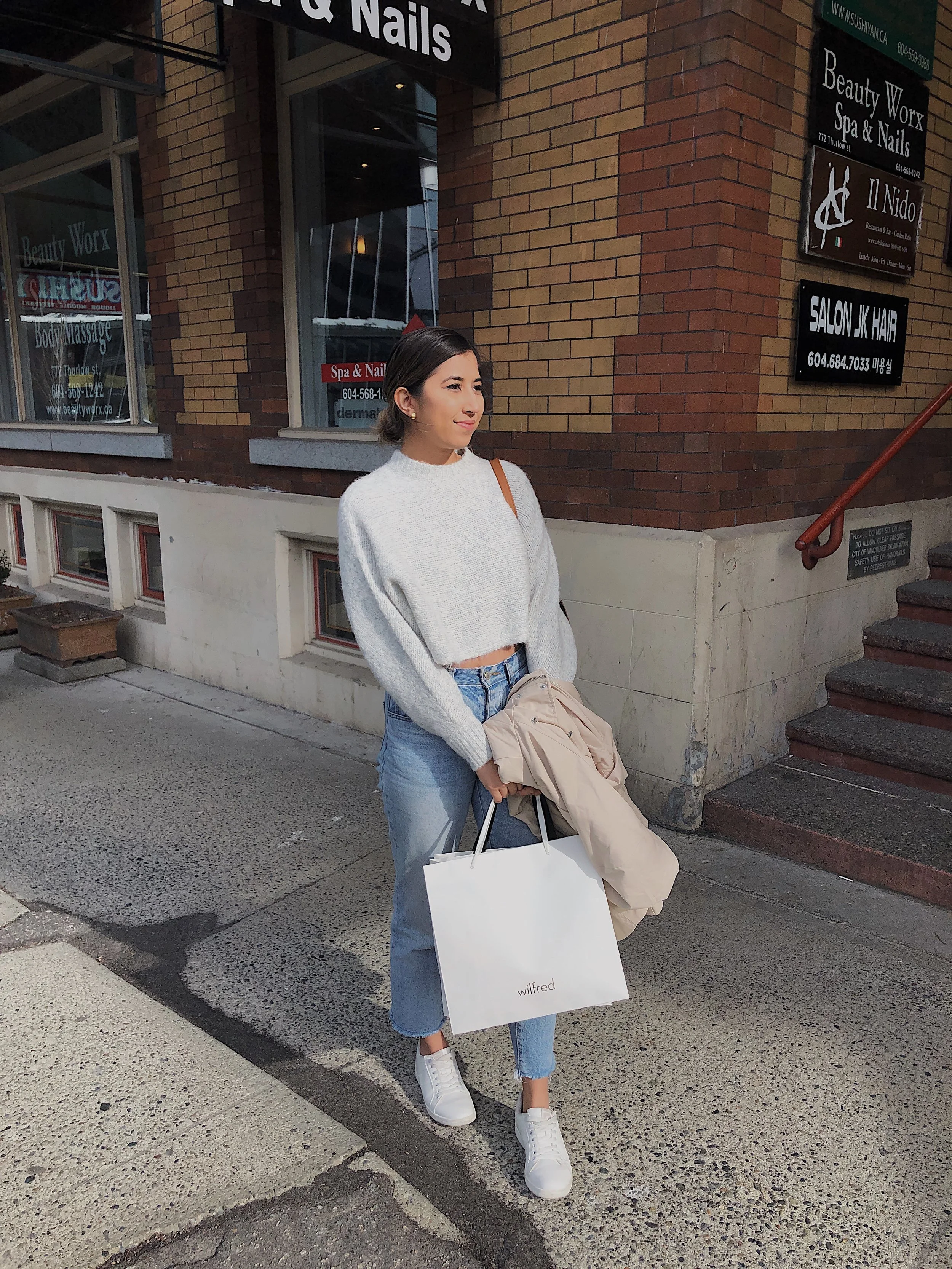 Alright so if you’re like me, you’ve shopped at Aritzia before a couple times, mostly online for their cozy sweaters and stylish outerwear. Knowing this brand originated in Vancouver, the fashionista in me just had to check out their store in person. And admittedly, I bought more than I originally planned, but in my defense their cropped sweaters fit sooo well. It’s super flattering for my body type (which is frankly, tall for ya girl at 5’8’’) so I had to stock up. I got this lovely Aritzia Lolan sweater in white, and it’s on sale now for $75 - in case cute cropped sweaters are your thing.
